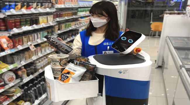 LG CLOi ServeBot'lar, LG Sciencepark araştırma kampüsünde bulunan bir markette, yalnızca asansörlerle erişilebilen katlardaki çalışanlara atıştırmalıklar ve içecekler sunmak için sıkı bir şekilde çalışıyor. Teslim edilen ürünler, ancak robot hedefine ulaştığında açılabilen kilit altında güvende tutuluyor.