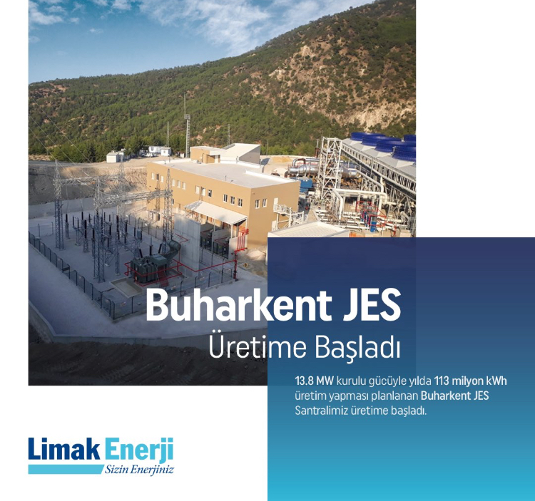 Limak Enerji’nin bilgilendirmesi şöyle: Buharkent JES Üretime Başladı. 13.8 MW kurulu gücüyle Buharkent JES, Milli servetlerimizden yeraltı sıcak su kaynaklarını kullanılarak yılda 113 milyon kWh elektrik enerjisi üretecek.