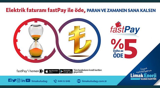 Limak Uludağ Elektrik, elektrik faturalarını fastPay ile ödeyen abonelerine yüzde 5 indirim yapacak.
