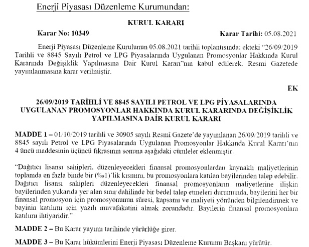 LPG Promosyonları konulu İ EPDK Kurul Kararı