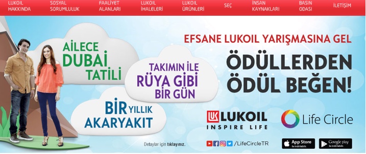 Akaryakıt şirketi Lukoil, Galatasaraylılar için yarışma düzenliyor. İşte Lukoil’in kampanya bilgilendirme: Futbol takımımız ile rüya gibi bir gün geçirme şansına, Otel Transilvanya 3 temalı Dubai tatili ya da 1 yıllık hediye akaryakıt kazanmaya ne dersin? Hadi, Life Circle uygulamasını indirip yarışmaya katıl, ödüllere ortak ol.