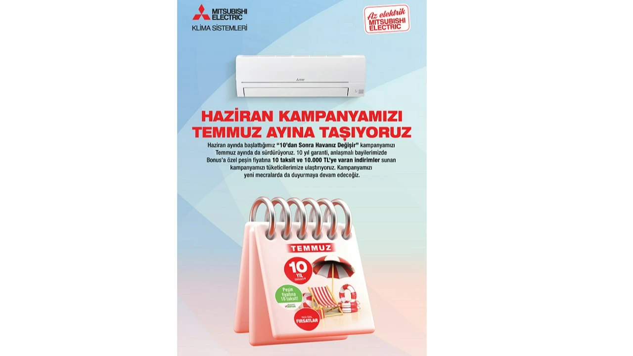 Geniş ürün gamıyla yaşam alanlarının konforunu artıran Mitsubishi Electric Türkiye Klima Sistemleri, müşteri memnuniyetini odağına alan yaklaşımıyla kullanıcılara çeşitli kolaylıklar sağlamaya devam ediyor. Sıcak yaz günlerinde konforu öncelikleyenler için haziran ayında başlattığı “10’dan Sonra Havanız Değişir” kampanyasını, yoğun ilgi üzerine temmuz ayında da sürdürüyor.