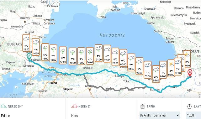 -Yola çıkacaklar, 'Çıkış ve variş' noktalarını yazınca ''Türkiye'nin başından sonuna; bir diğer ifadeyle, Edirne'den Kars'a, Sinop'dan Antalya'ya'' gidecekleri yol güzergahındaki ''kar - kış - aşırı sıcak - soğuk vb'' gibi hava durumunu anında öğrenebiliyor. Buna göre de yol hazırlıklarını yapabiliyor.
