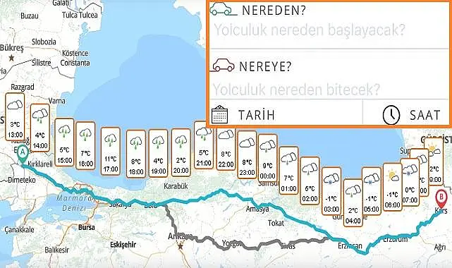 Gidilecek güzergaydaki ''Yol Hava Durumu'u'' öğrenmek için,