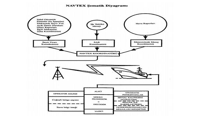 NAVTEX : ''Denizcilere seyir ile ilgili en son acil bilgilerin, meteorolojik raporların, tehlike mesajlarının özel olarak geliştirilmiş vericiler ve alıcılar vasıtası ile ulaştıran otomatik seyir uyarı teleks sistemini.''