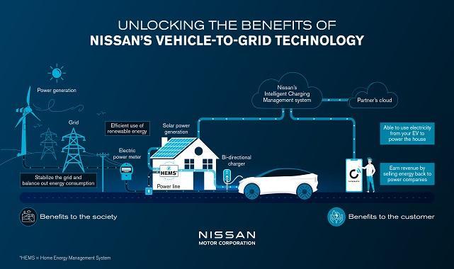 - Nissan’s innovative vehicle-to-grid (V2G) technology aims to unlock additional benefits of electric vehicles. Besides being a cleaner way to drive, EVs with V2G bi-directional charging capability can be used as mobile energy storage units.