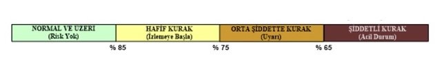 Meteroroloji Genel Müdürlüğü, 2023 yılı ilk kuraklık haritasını yayınladı (Şubat 2023). MGM'nin normalin yüzdesi metoduna göre kuraklık harıtalarını aşağıda inceleyebilirsiniz. MGM'nin yeni yayınladığı haritalara göre Türkiye Ocak ayında Şiddetli Kuraklık yaşadı. Bunun içinde Acil Önlem alınması gerekiyor. Meteoroloj'nin verilerine göre işte Türkiye'de kuraklık durumu: