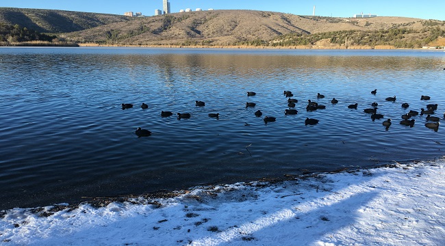(Enerji Ekonomisi - Özel Haber) Ankara’daki ODTÜ Eymir Gölü dondu. Hafta sonu Ankaralılar’ın uğrak yeri olan ODTÜ Eymir, mevsimin kış ve soğuk olması nedeniyle, hafta sonunu güneşe rağmen sakin geçirdi. Gölün büyük bölümü donmuş olup, güneş gören bazı bölümlerinde ise buzlar eridi. Ayrıca, gölün etrafındaki ağaçlık alanda da karlar erirken, diğer alanlar ise beyazla kaplıydı.