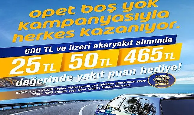 Türkiye’nin müşteri memnuniyetinde lider markası olan OPET, müşteri deneyimini en üst seviyeye çıkarma hedefiyle düzenlediği kampanyalarına devam ediyor. “Boş Yok Kampanyası” kapsamında farklı günlerde 3 kez tek seferde yapılacak 600 TL ve üzeri akaryakıt alışverişlerinde 25 TL, 50 TL ve 465 TL değerindeki ödüllerden biri anında hediye ediliyor.