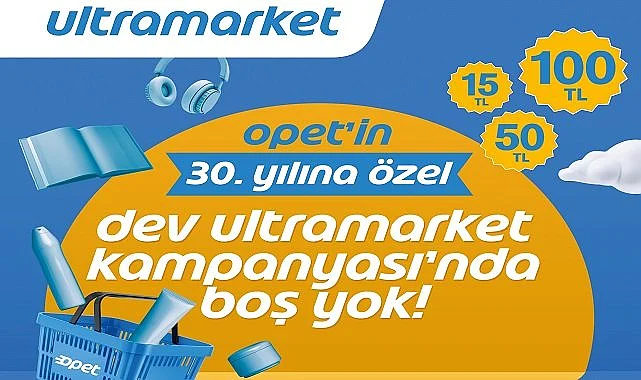 OPET, müşterileri için 30. yılına özel fırsatlar sunmaya devam ediyor. 20 Ekim tarihine kadar geçerli “OPET Ultramarket Alışverişlerine Boş Yok Kampanyası” ile Ultramarketler’de yapılacak her 100 TL ve üzerindeki alışverişlerde 15, 50 veya 100 TL değerinde “OPET yakıt puan” hediye ediliyor.