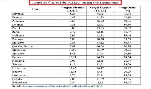 Türkiye ve Avrupa (AB) ülkeleri LPG otagaz fiyatlar ve vergileri!
