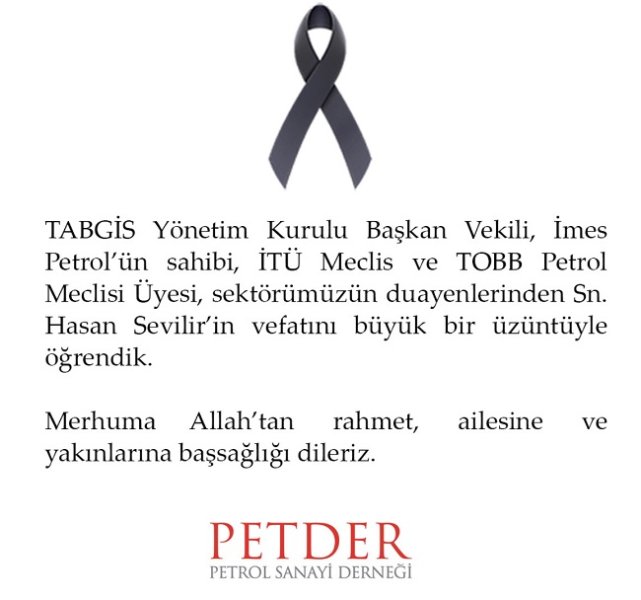 Petrol Sanayi Derneği (PETDER), taziye yayınladı. Enerji Ekonomisi