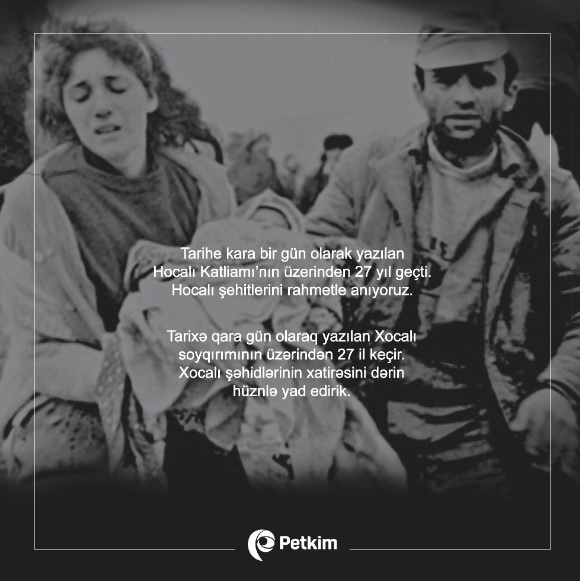 Petkim sosyal medya hesabı üzerinden yayınladığı mesajında 'Hocalı Katliamı Şehitlerini' rahmetle andı. Petkim'in mesajı şöyle: Tarihe kara bir gün olarak yazılan Hocalı Katliamı’nın üzerinden 27 yıl geçti. Hocalı şehitlerini rahmetle anıyoruz.