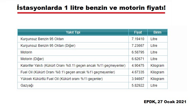 Ancak Maliye Yönetimi, ham petrol fiyatlar kaynaklaı yüksek fiyat artışları nedeniyle benzin, motorin ve LPG Otogaz için Eşel Mobil Sistemi'ni (EŞM) devreye soktu. Bu ndenele, petrol kaynaklı akaryakıt fiyat artışları, EŞM sistemi ile akaryakıt ürünleri üzerinden alınan Özel Tüketim Vergisi (ÖTV)'den düşülerek istasyonlarda pompada sürücülere yansıtılmıyor. 27 Ocak 2021 tarihi itibariyle geçerli benzin - motorin fiyatları