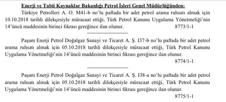 Petrol İşleri Genel Müdürlüğü (PİGM) ruhsat duyurusu yaptı. Ayrıntılar haberin sonunda: