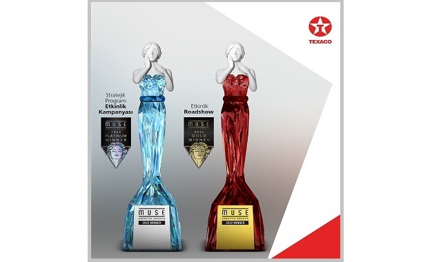 Pazarlama ve tanıtım faaliyetleri çerçevesinde düzenlenen Texaco Türkiye Yollarında Roadshow projesi, küresel prestije sahip MUSE Creative Awards 2022’de iki ayrı kategoride ödüle layık görüldü. Markaların reklam, pazarlama, dijital medya gibi alanlarda gerçekleştirdiği yaratıcı fikirler ve tasarım çalışmalarının ödüllendirildiği MUSE Creative Awards 2022’de, Texaco, Stratejik Program – Etkinlik Kampanyası kategorisinde ‘Platin’ ve Etkinlik – Roadshow kategorisinde de ‘Gold’ ödülün sahibi oldu.