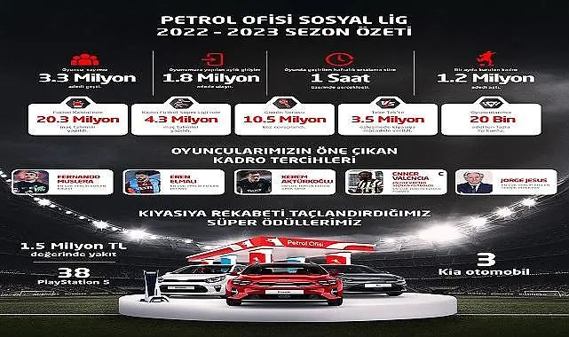 Sezonu ilk 3 sırada tamamlayan 3 kişinin Kia otomobil kazandığı Petrol Ofisi Sosyal Lig’de oyuncular sezon boyunca, 38 adet PlayStation 5 ve Petrol Ofisi’nden 1 milyon 500 bin TL değerinde akaryakıt kazandılar. Otomobil ödülleri, önümüzdeki günlerde düzenlenecek tören ile sahiplerine ulaştırılacak.