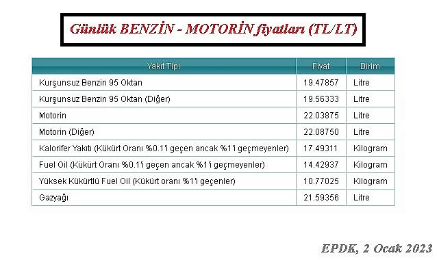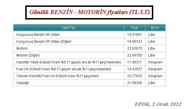 Yeni yılın ilk iş gününde ise akaryakıt istasyonlarında 1 litre benzin ve motorin kaç liradan satılıyor?