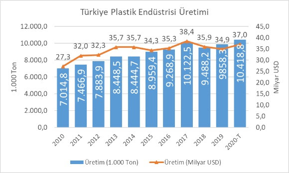 2019 yılında %3,9 büyümesine rağmen 2017 üretimini yakalayamayan sektörün 2020 yılında nihayet bu seviyeyi geçtiğini belirten Gülsün: “2018 yılında yaşanan kur şoku ve sonrasında 2019 yılında küresel otomotiv pazarında yaşanan daralmanın etkisiyle zayıf geçen iki yılın ardından 2020’de sektörün %5,7 büyümesini bekliyoruz. Tüm dünyada derin yaralar açan pandemi boyunca hijyenin sağlanması ve tedarik zincirinin kırılmaması için büyük önem arz eden plastiğin tüketimi de arttı.Ülkemiz plastik sektörü mevcut kurulu kapasitesi ve esnek yapısı sayesinde dünyada artan bu talebi karşılama konusunda önemli bir atılım yaptı. Bu kapsamda derneğimiz tarafından yapılan analizler yıl sonu itibariyle ülkemiz plastik mamul üretiminin 10,4 milyon ton dolayında olacağını gösteriyor” dedi.
