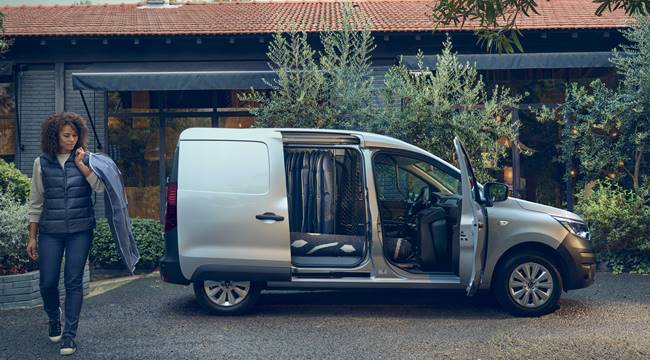 Tamamen yeni Kangoo Van, orta gövde sütunu çıkarılarak önceki modelin iki katı olan 1.446 mm genişliğindeki açıklıkla pazardaki en geniş sağ yan giriş açıklığını sunuyor. Şehir içi yollarda ekstra kullanışlı olan “Open Sesame by Renault” olarak bilinen bu en son yenilik, yükün yan taraftan yüklenip boşaltılmasını sağlayarak dar park alanlarında arka kapağın açılmasıyla ilgili sınırlamaların önüne geçiyor.