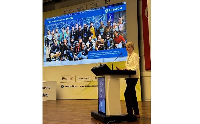 Etkinlik kapsamında Rosatom Sürdürülebilir Kalkınma Departmanı Direktörü Polina Lion, yeşil enerji dönüşümünde nükleer enerjinin rolüne ilişkin bir sunum yaptı. Lion sunumunda, sera gazı emisyonlarının azaltılmasına önemli katkılar sağlayan Rosatom’un nükleer enerji çözümlerini aktardı. Bu çözümler arasında bulunan 3+ nesil VVER-1200 reaktörlerine sahip nükleer güç santralleri ve küçük modüler reaktör projeleri hakkında bilgi veren Lion, sunumunda ayrıca nükleer enerjinin sürdürülebilirlik kriterleri açısından değerlendirilmesi ve yeşil düzenlemelere uygunluğu konularında da bilgi verdi. Lion, nükleer enerjinin ‘yeşil’ niteliklerinden en yüksek düzeyde yararlanılabilmesi için dikkate alınması gereken yeşil ve iklim odaklı finansal araçlara da değindi.