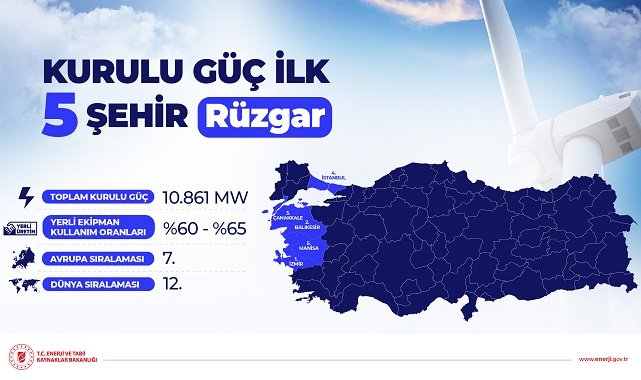 - rüzgardan (RES) en fazla elektrik üretilen ilk 5 il!