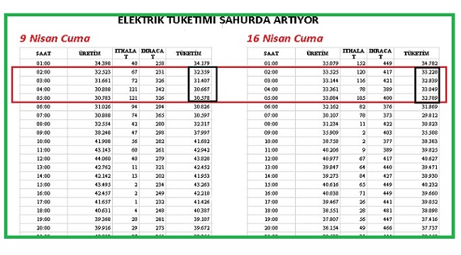 - Günlük - Saatlik elektrik tüketimi ayrıntıları için haberin sonundaki foto üstüne tıklayınız.
