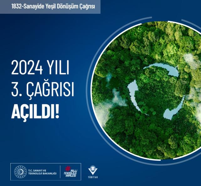 TÜBİTAK, bilgi paylaşımı şöyle: "1832 Sanayide Yeşil Dönüşüm 2024-3 Çağrısı açıldı" başlıklı duyurusu ayrıntıları: "@TCSanayi koordinasyonunda, Dünya Bankası Türkiye Yeşil Sanayi Projesi kapsamında @tubitakteydeb bünyesinde açılan çağrı ile; Özel sektörün yeşil dönüşüme yönelik ürün veya süreç geliştirme faaliyetleri desteklenecektir. Çağrıya KOBİ ve büyük ölçekli kuruluşların başvuruları mümkün olup, ortaklı başvuru da yapılabilecektir."