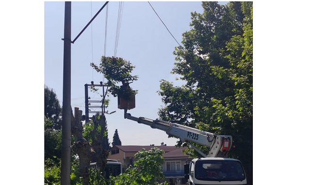 Enerji nakil hatlarına yakın bölgelerde, yoğun ve seyrek ağaçlık alanlarda, özellikle de yol kenarlarında hatlara temas eden ya da temas riski taşıyan ağaçlar, uzman ekipler tarafından kontrollü şekilde budanıyor.