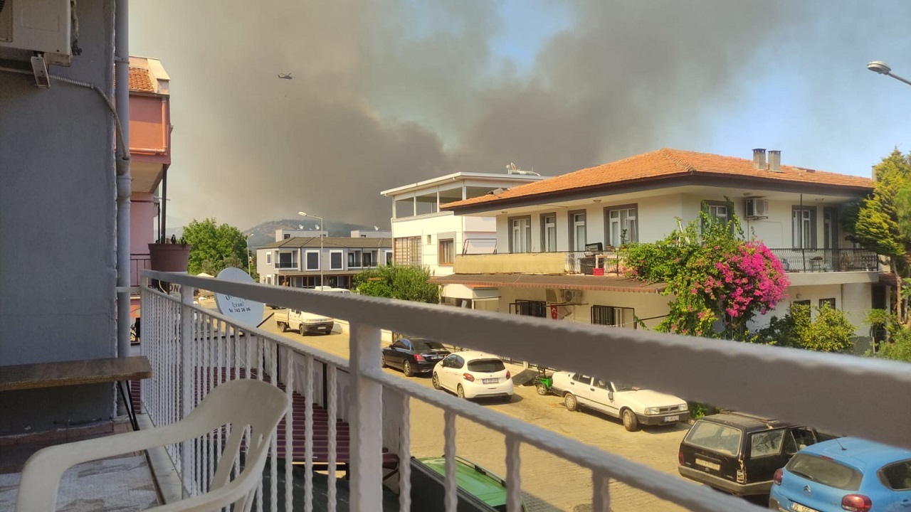 Görüntüler an itibariyle Ürkmez Konyalı mahallesinden. Alevler, mahallenin içine kadar geldi. Yöre sakinleri ve yangın ekipleri, yangınların söndürülmesi için yoğun çapa sarfediyor.