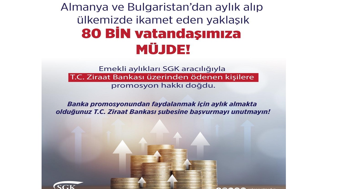 - SGK aracılığıyla T.C. Ziraat Bankası üzerinden aylığını alan yaklaşık 80 bin vatandaşımız artık promosyon alabilecek.