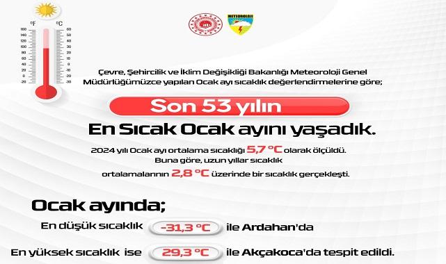 Türkiye son 35 yılın en sıcak Ocak ayını yaşadı. Bu yılın ocak ayında ortalama sıcaklık 5,7 derece ölçüldü. Ocakta en yüksek sıcaklık Akçakoca'da ve en düşük sıcaklıkta Ardahan'da ölçüldü.