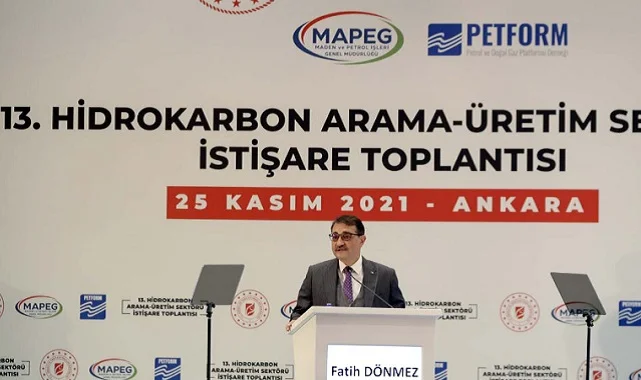 'Bunun yüzde 76'sını TPAO kalan yüzde 24'ünü ise özel sektör eliyle ekonomimize kazandırdık. Toplam 347,3 milyon metreküp doğal gaz üretimi gerçekleştirdik. Bunun da yüzde 80'ini TPAO kalan yüzde 20'sini ise diğer şirketler üretti. Günlük ham petrol üretim ortalamamız 65 bin 328 varil olarak gerçekleşirken, 1,15 milyon metreküplük de doğal gaz üretimimiz oldu.'