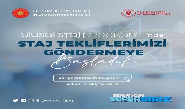 Enerji ve Tabi Kaynaklar Bakanlığı (ETKB): ''Gençlerimizin kariyer yolculuklarında tüm staj imkanlarımızla destek olmak için Ulusal Staj Programı'nda tekliflerimizi göndermeye başladık.''