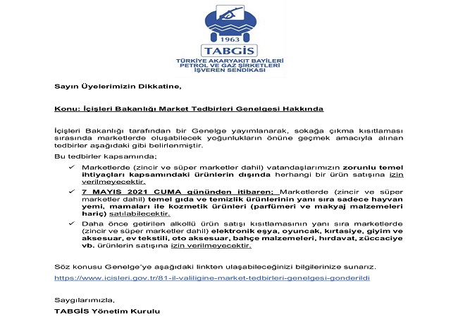 TABGİS - 7 Mayıs itibariyle market satışları...