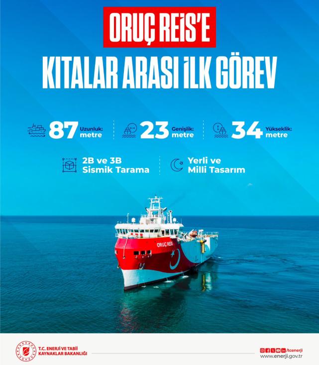 "Tamamı Türkiye tersanelerinde, yerli ve milli imkanlarla yapılmış Oruç Reis Sismik Araştırma Gemimiz bugün Somali görevi için yola çıkıyor."
