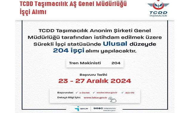 ''TCDD Taşımacılık Anonim Şirketi Genel Müdürlüğü tarafından ulusal düzeyde istihdam edilmek üzere 204 Kişilik İşçi Alım İlanı Başvuruları Başladı.''