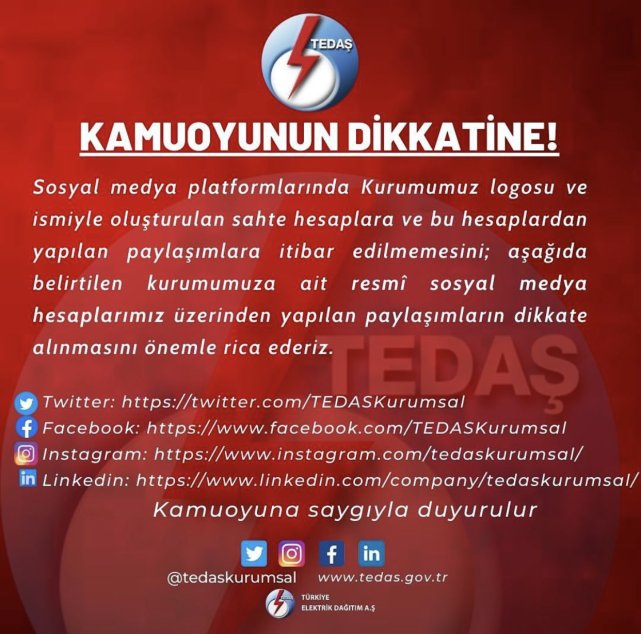 TEDAŞ - 'Kurumumuza Ait Resmî Sosyal Medya Hesaplarımız'