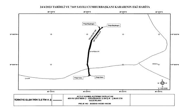 TEİAŞ - ''400 kV (Batman 2-Diyarbakır 3) Brş.N-Çınar Enerji İletim Hattı Projesi Kapsamında Bazı Taşınmazların Türkiye Elektrik İletim Anonim Şirketi Genel Müdürlüğü Tarafından Acele Kamulaştırılması Hakkında Karar' Acele Kamulaştırma duyurusu yaptı. TEİAŞ'ın ihale duyurusu bugünkü Resmi Gazete de yayınlandı (25.04.2023 tarih ve 32171 sayılı Resmi Gazete).