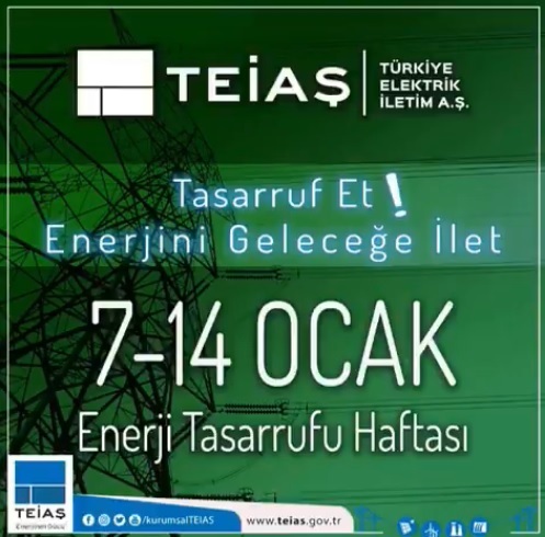 Enerji Ekonomisi - Türkiye Elektrik İletim AŞ (TEİAŞ), 7-13 Ocak Enerji Tasarruf Haftası nedeniyle bir kutlama mesajı yayınladı. TEİAŞ kutlama kesajında 'Tasarruf Et. Enerjini Geleceğe İle' ifadelerine yer verdi.