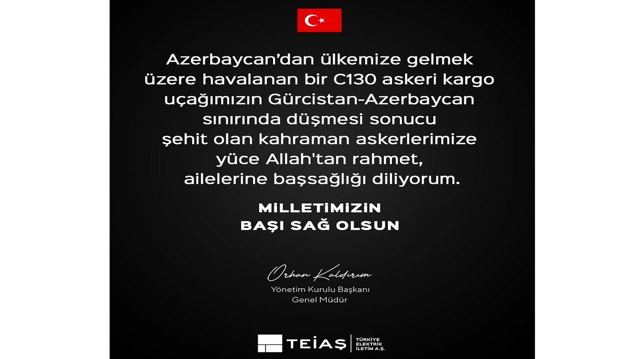 Azerbaycan'dan Türkiye'ye gelmek üzere kalkan TSK'ya (Türk Silahlı Kuvvetleri) ait C130 tipi Kargo uçağı, Gürcistan'da düştü. 20 personelin bulunduğu uçakla ilgili Milli Savunma Bakanlığı, kazayla ilgili arama-kurtarma çalışmalarının devam ettiğini açıkladı. Kaza sonrası bir çok kamu-özel kurum ve kuruluş, ''Başsağlığı mesajı'' yayınladı.