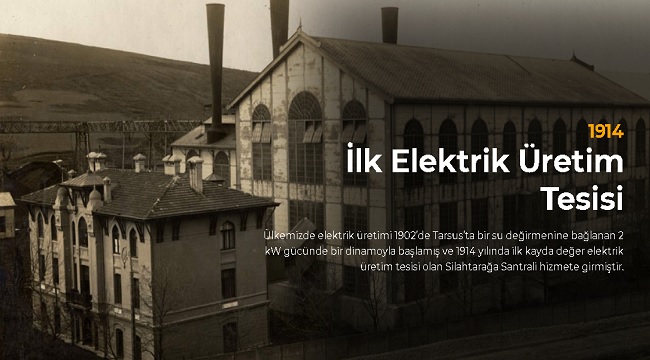 Ülkemizde elektrik üretimi 1902’de Tarsus’ta bir su değirmenine bağlanan 2 kW gücünde bir dinamoyla başlamış ve 1914 yılında ilk kayda değer elektrik üretim tesisi olan Silahtarağa Santrali hizmete girmiştir.