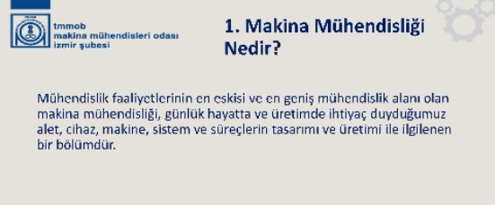 Üniversite ve bölüm tercihi yapacaklar için 5 soruda Makina Mühendisliği. TMMOB Makina Mühendisleri Odası (MMO) İzmir Şubesi hazırladı... İŞTE 5 SORUDA MAKİNA MÜHENDİSLİĞİ! 1. 2. 3. 4. 5. Enerji Ekonomisi