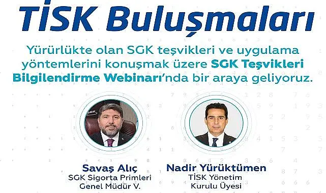 Türkiye İşveren Sendikaları Konfederasyonu (TİSK), bilgi paylaşımı yaptı: ''29 Şubat Perşembe günü saat 14.00’te SGK Genel Müdürlüğü'nden Savaş Alıç ve TİSK Yönetim Kurulu Üyemiz Nadir Yürüktümen ile SGK Teşvikleri Bilgilendirme Webinarı’nda bir araya geliyoruz. Siz de Instagram bio’daki linkten webinarımıza katılabilirsiniz.''