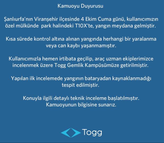 Elektrikli Togg'un "Kamuoyu Duyurusu" başkıklı açıklaması şöyle... (togg haberleri)