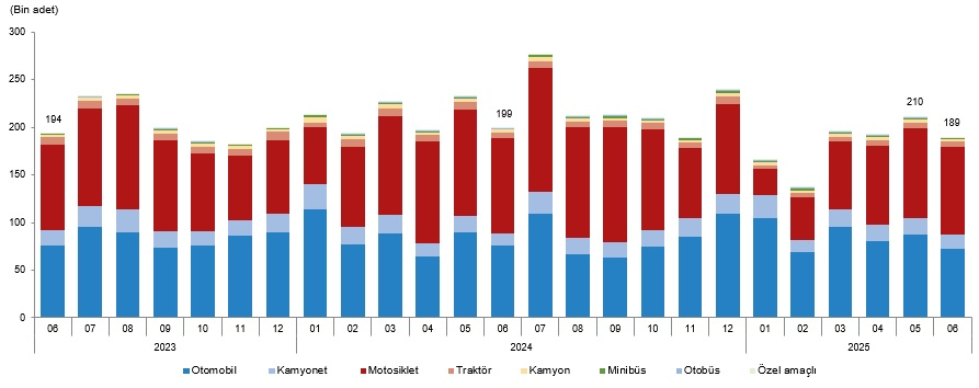 Trafiğe kaydı yapılan taşıt sayısı, Haziran 2023 - Haziran 2025