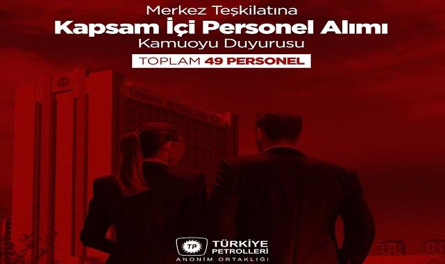 - ''Türkiye Petrolleri Anonim Ortaklığı merkez teşkilatına 49 kişilik kapsam içi personel alımı yapılacaktır.''