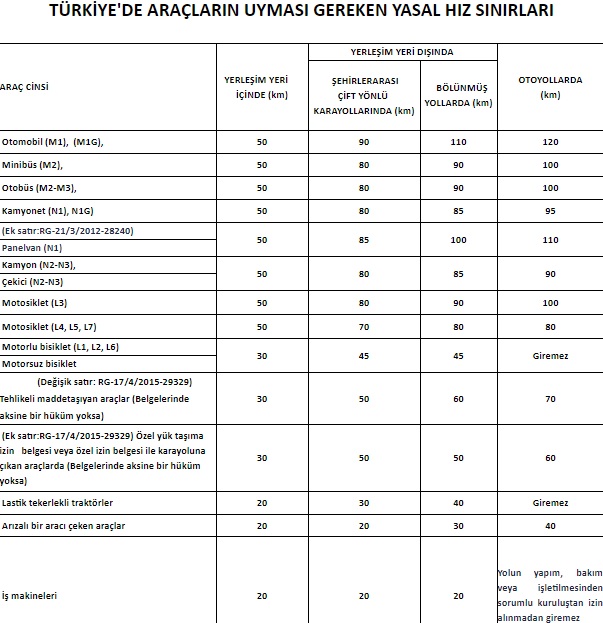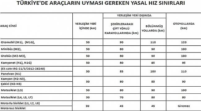 İŞTE TÜRKİYE'DEKİ YOLLARDA UYGULANAN HIZ SINIRLARI