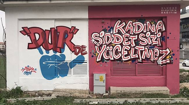Şiddete Dur De” mesajını grafiti çalışmasıyla yazdırdı.