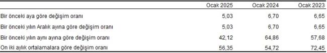 | Ocak 2025 | Ocak 2024 | Ocak 2023 | |